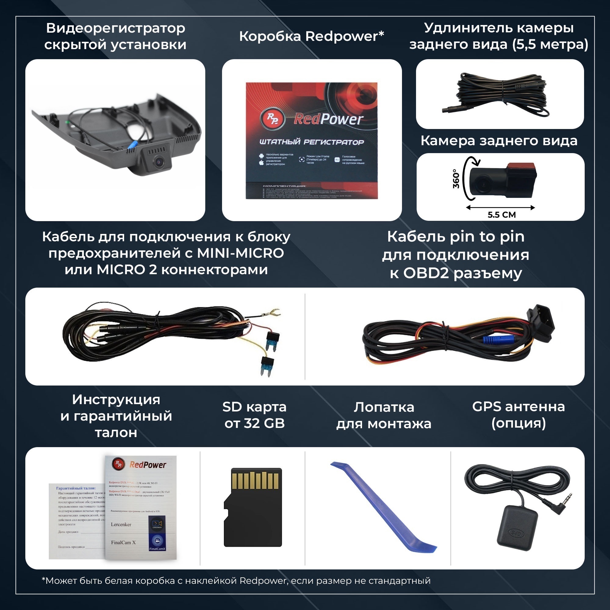 Компания Redpower рада представить новую линейку штатных регистраторов DVR-G серии. Отличия от N серии: новый чип позволяет записывать видео в разрешении 2,5K (было Full HD), новый сенсор Sony 335, возможность подключения GPS антенны и встроенный конденсатор.