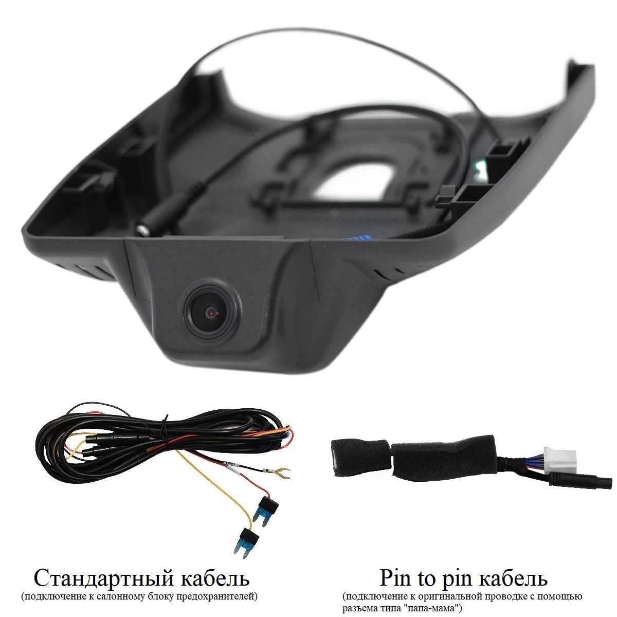 - Провод питания (два варианта подключения питания: стандартный кабель и кабель pin to pin к оригинальной проводке)