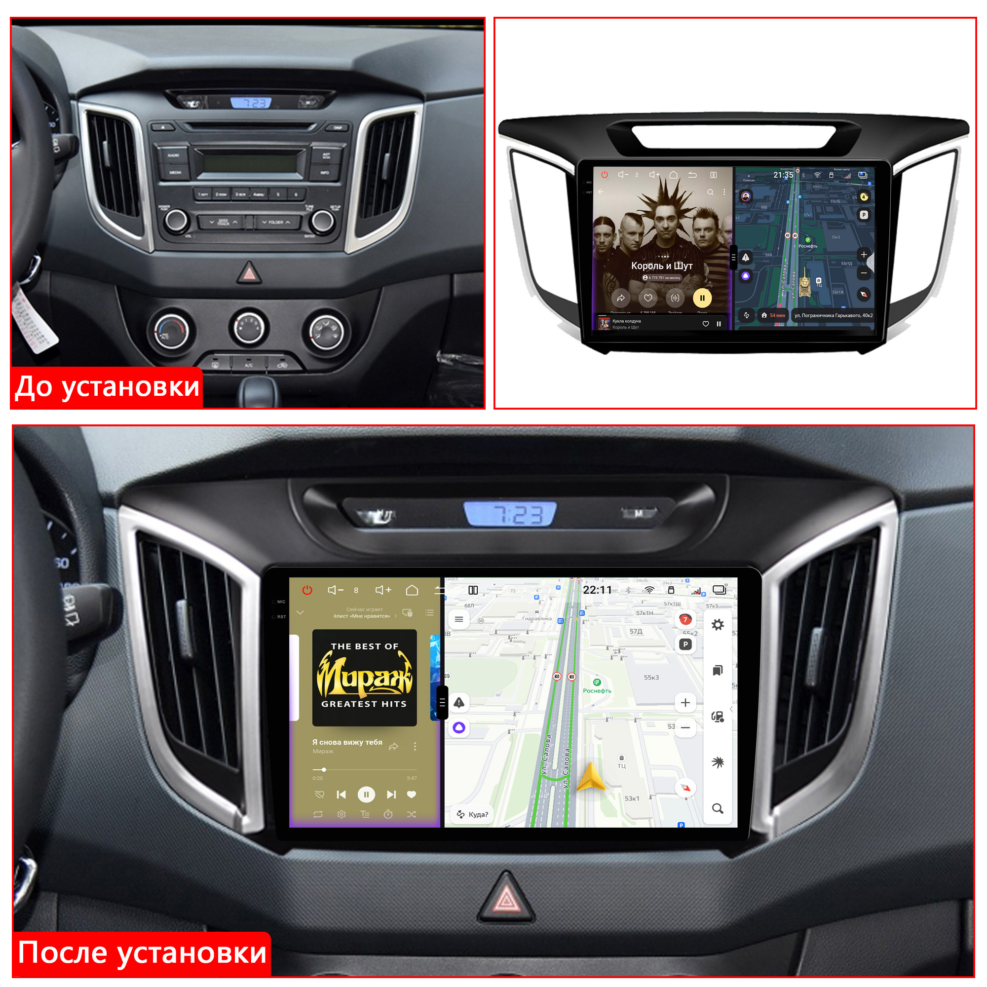 *** К универсальной магнитоле рамка и проводка в комплект не входит)