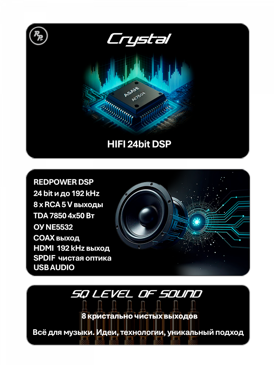 - Какой процессор посоветуете для Crystal? Любой DSP и акустику Redpower. Все рассчитано и адаптировано для создания уникальной экосистемы.