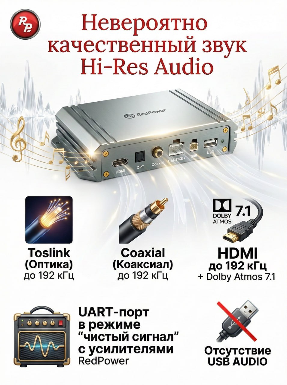 HDMI до 192Khz +Dolby Atmos 7.1