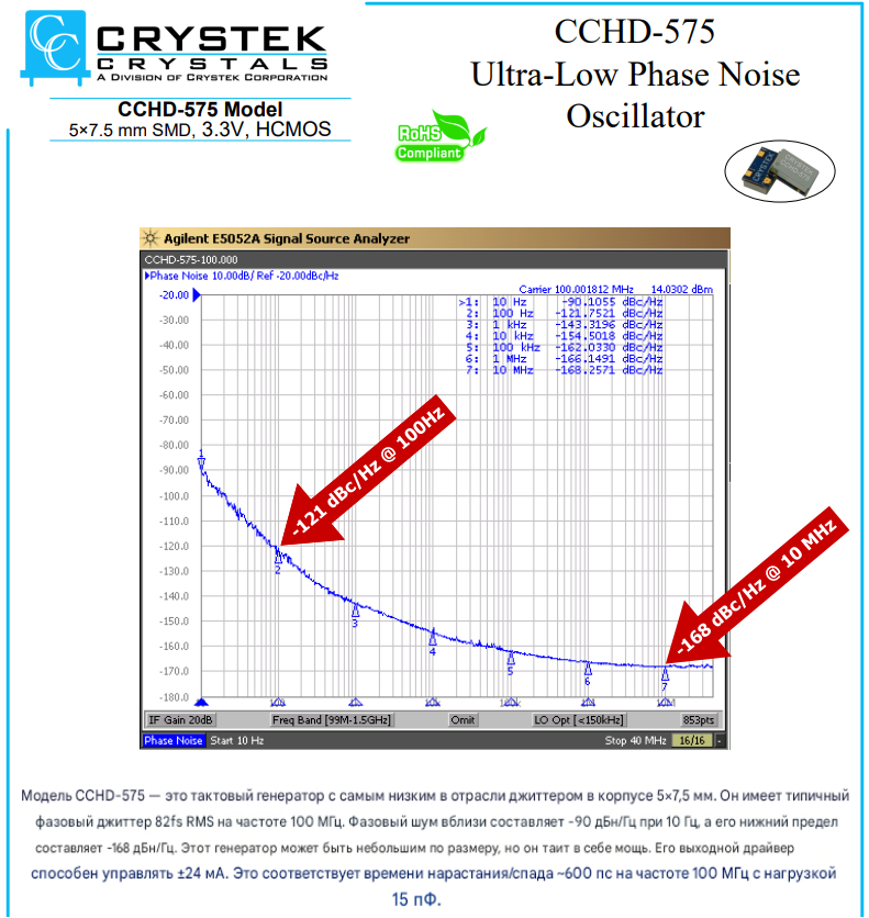 | Фазовый шум | -130 dBc/Hz @ 10 кГц смещение | -150 dBc/Hz @ 10 кГц смещение |