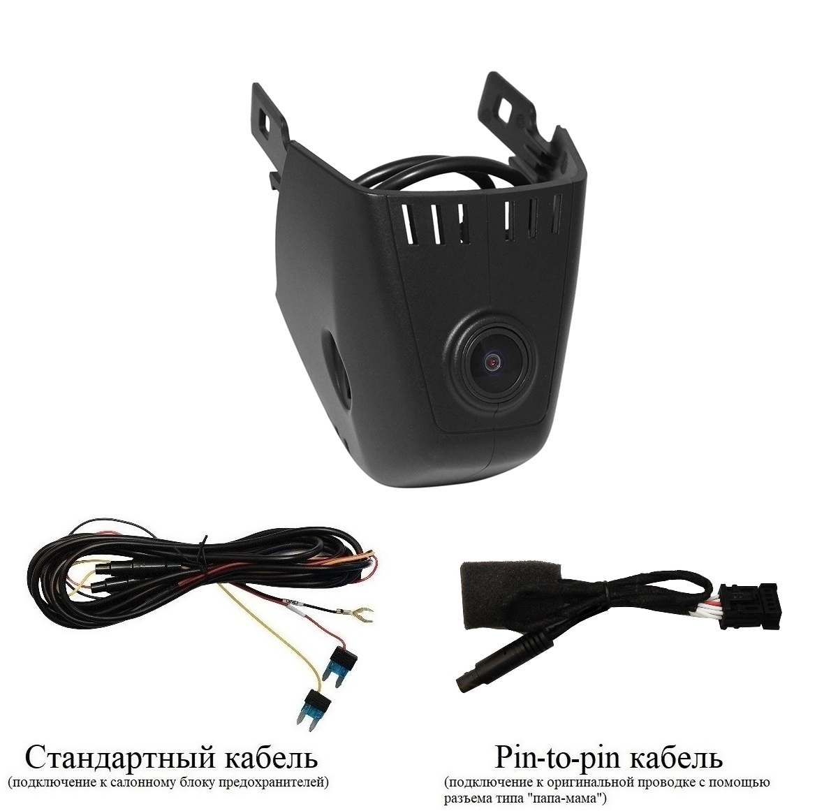 - Провод питания (два варианта подключения питания: стандартный кабель и кабель типа папа-мама к оригинальной проводке)