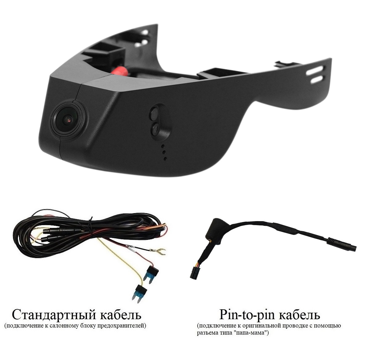 - Камера заднего вида с универсальным креплением на двухсторонний скотч (в комплекте) и удлинитель