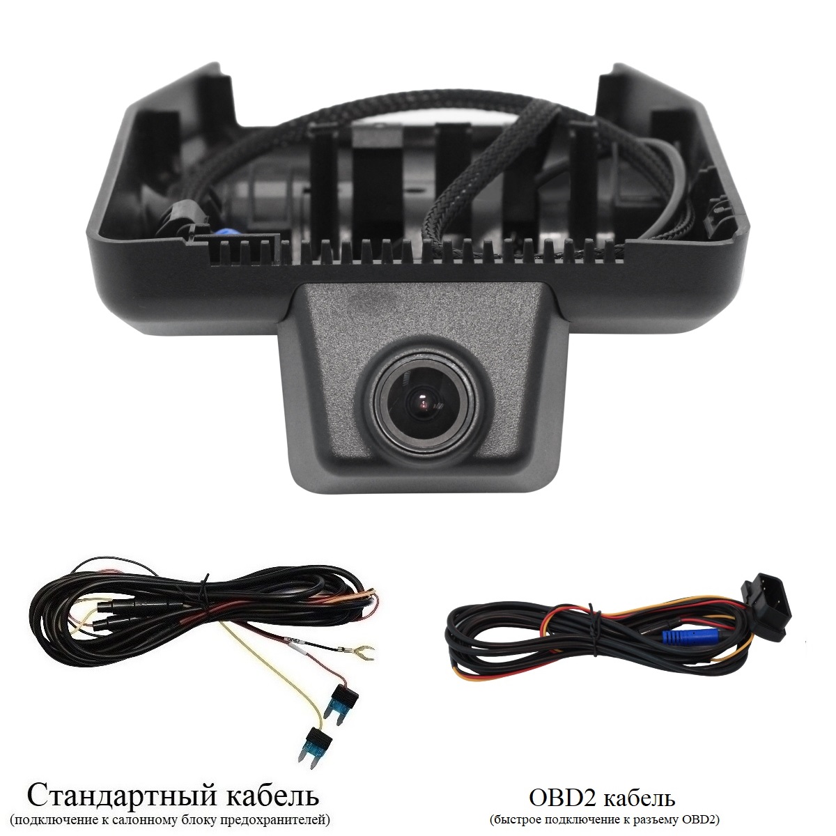 - Провод питания (два варианта подключения питания: стандартный кабель и кабель типа папа-мама к оригинальной проводке плафона освещения салона)