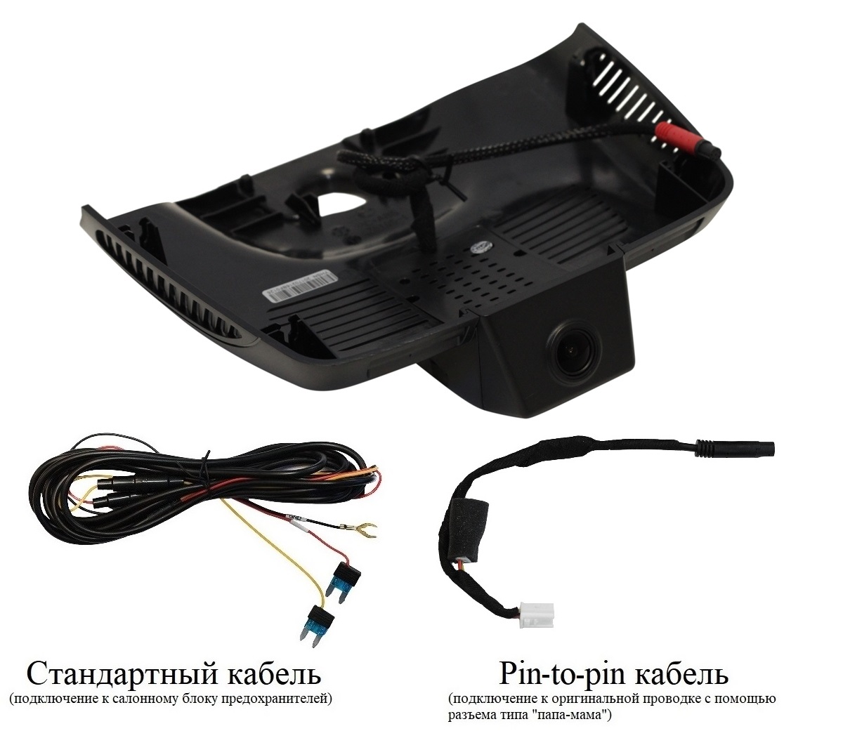 • Провод питания (два варианта подключения питания: стандартный кабель и кабель типа папа-мама к оригинальной проводке)