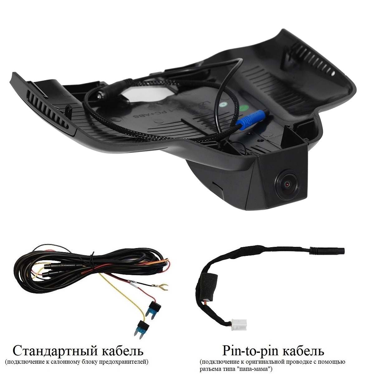 - Провод питания (два варианта подключения питания: стандартный кабель и кабель типа папа-мама к оригинальной проводке)