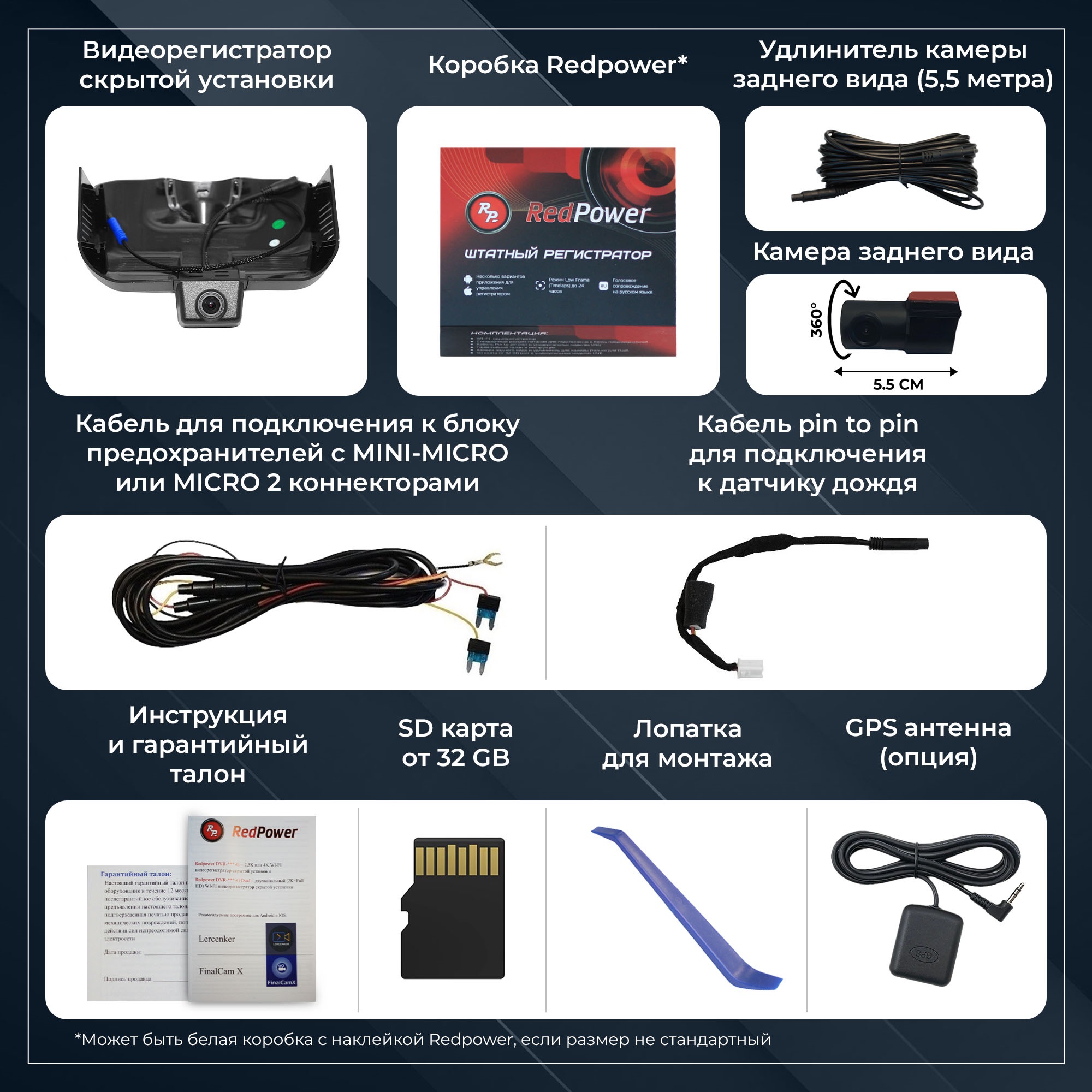 Компания Redpower рада представить новую линейку штатных регистраторов DVR-G серии. Отличия от N серии: новый чип позволяет записывать видео в разрешении 2,5K (было Full HD), новый сенсор Sony 335, возможность подключения GPS антенны и встроенный конденсатор.